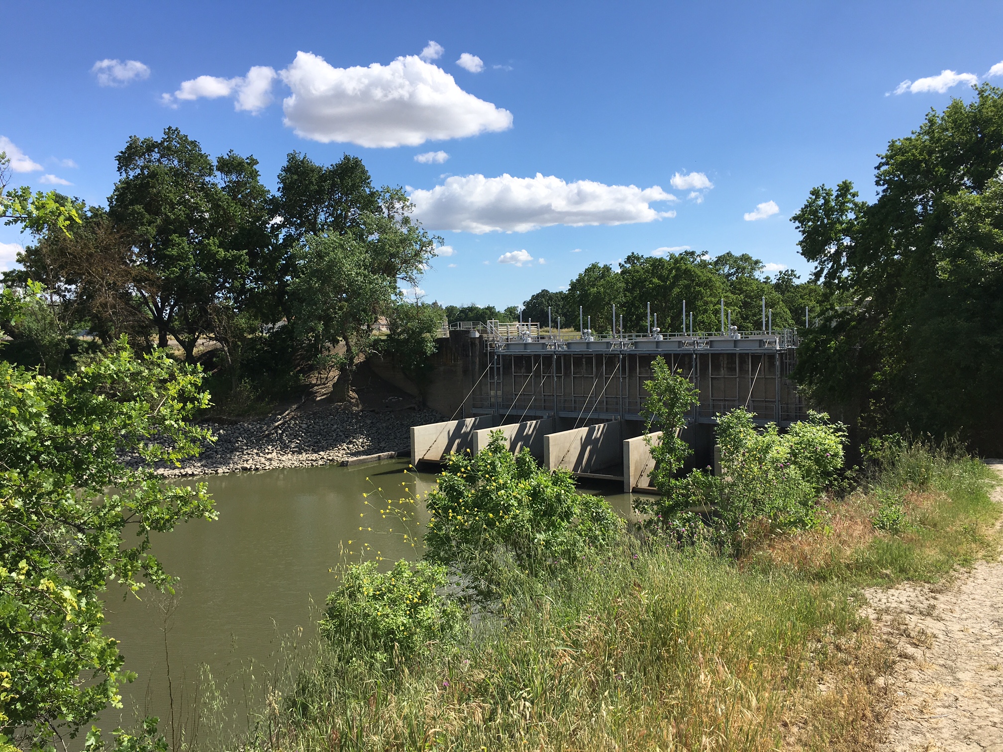 Juvenile salmon aren’t the sole focus of these projects. The adults swimming upstream in the Sacramento River to spawn are kept on track and out of dead ends through a series of barriers that prevent them from taking the wrong turn out of the river and into natural drainage areas. Lewis Bair, general manager at Reclamation District 108, walked us through one of these projects near the popular fishing spot Knight’s Landing.